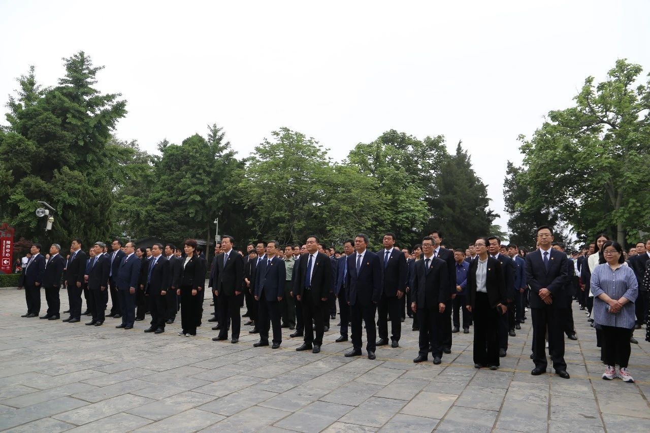 5月14日上午,开封市委常委、兰考县委书记李明俊、县长丁向东带领全县各单位职工代表、各学校教师和学生代表,以及焦裕禄亲属代表前往焦裕禄陵园,表达对焦裕禄同志的缅怀和敬仰。