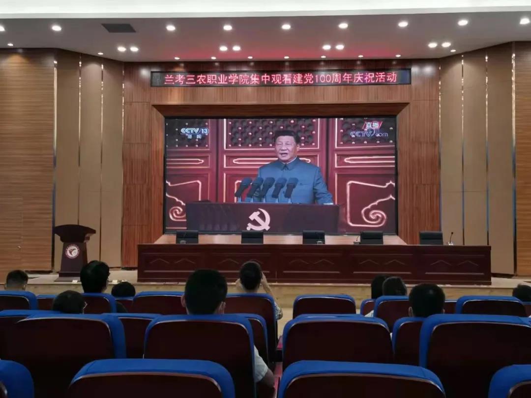 7月1日上午,庆祝中国共产党成立100周年大会在北京天安门广场隆重举行。中共中央总书记、国家主席、中央军委主席习近平发表重要讲话。兰考三农职业学院组织师生在500人报告厅集中收看大会直播,共同见证了这一伟大时刻。