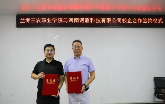 5月30日,我校与河南诺盾科技有限公司校企共建智慧健康养老实训基地签约仪式在图书馆会议室举行。副校长孔德省、河南诺盾科技有限公司教育事业部总监赵旭辉出席签约仪式。教育教学处副处长杜友、旅游服务与管理学院负责人郭春乐参加。签约仪式由招生就业处处长梁永生主持。