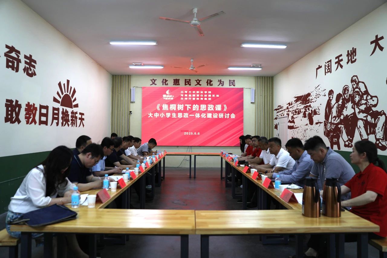 曾小平一行走进研学基地,实地参观了丰收馆、学用馆、丰收营地,详细了解研学基地的设置运营情况。参观活动结束后,双方在研讨会上,以“《焦桐树下的思政课》大中小学生思政一体化建设”为主题进行交流探讨,初步达成合作共识。