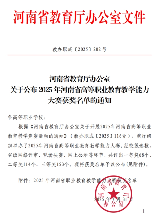 近日,2025年河南省高等职业教育教学能力大赛结果正式揭晓,兰考三农职业学院3个教师团队凭借出色的表现,一举斩获3项二等奖!