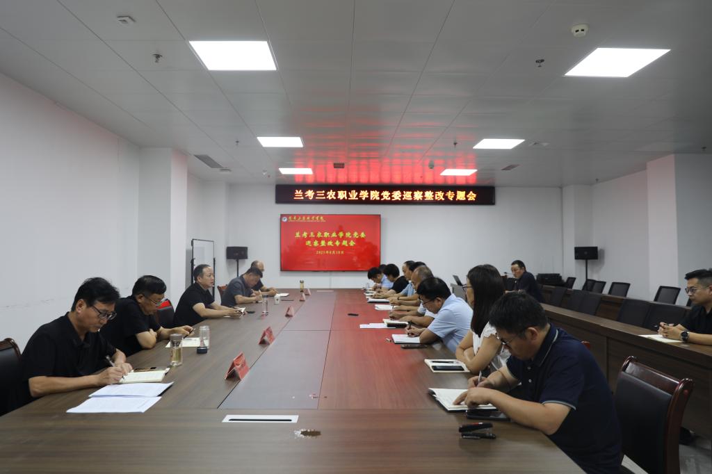 8月18日,兰考三农职业学院召开党委巡察整改工作专题会,党委书记曾小平主持会议,党委副书记王凤普、副校长孔德省、纪委书记张志强、副校长白宝山及各部门负责人参加会议。