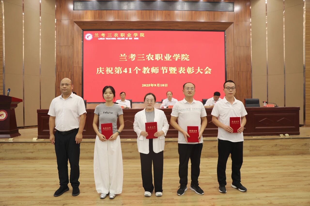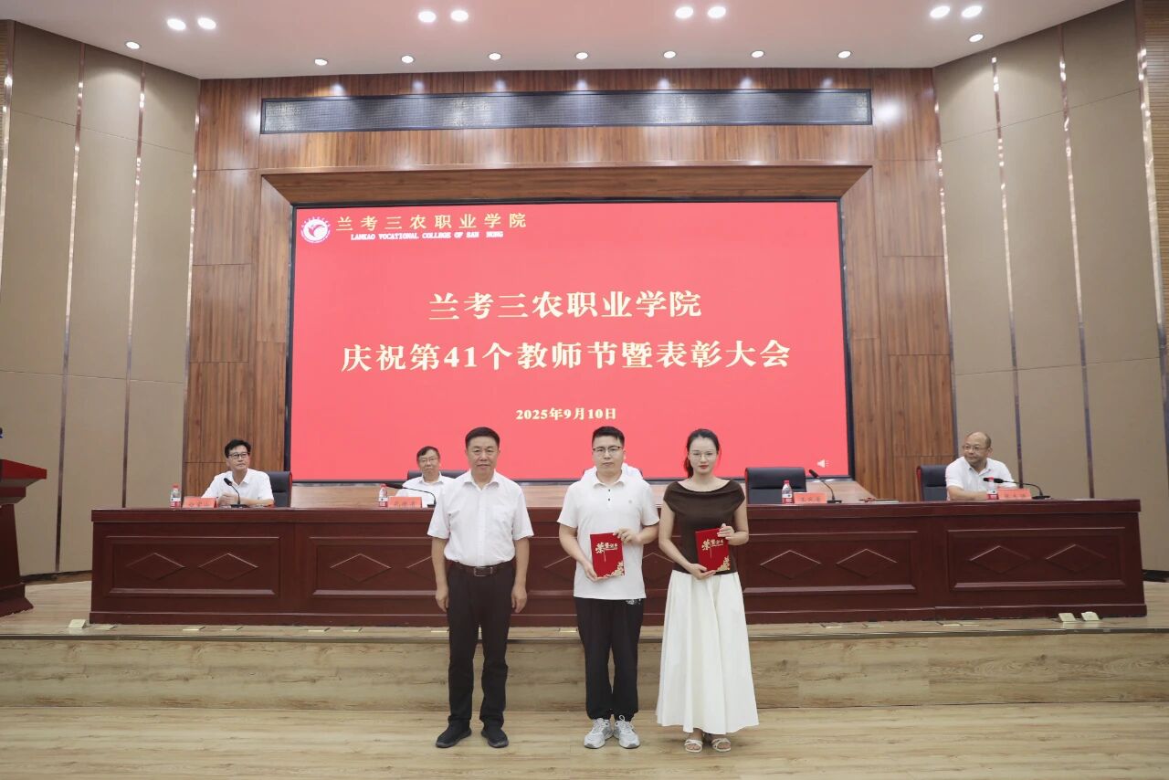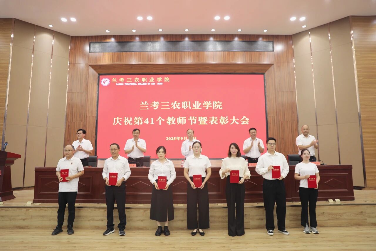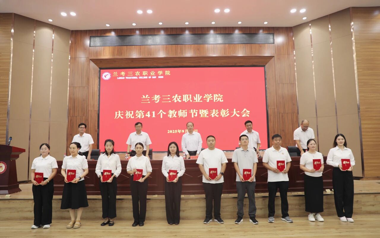 9月10日,兰考三农职业学院召开庆祝第41个教师节暨表彰大会。校党委书记曾小平,党委副书记王凤普,副校长孔德省,纪委书记张志强,副校长白宝山出席会议。各处(室)、各院(部)负责人及全体教职工参加会议。会议由王凤普主持。