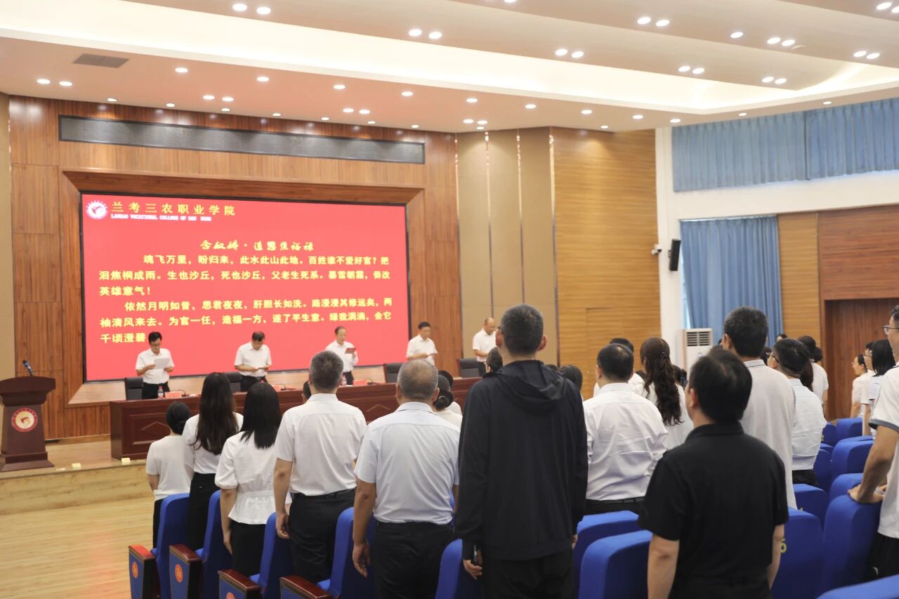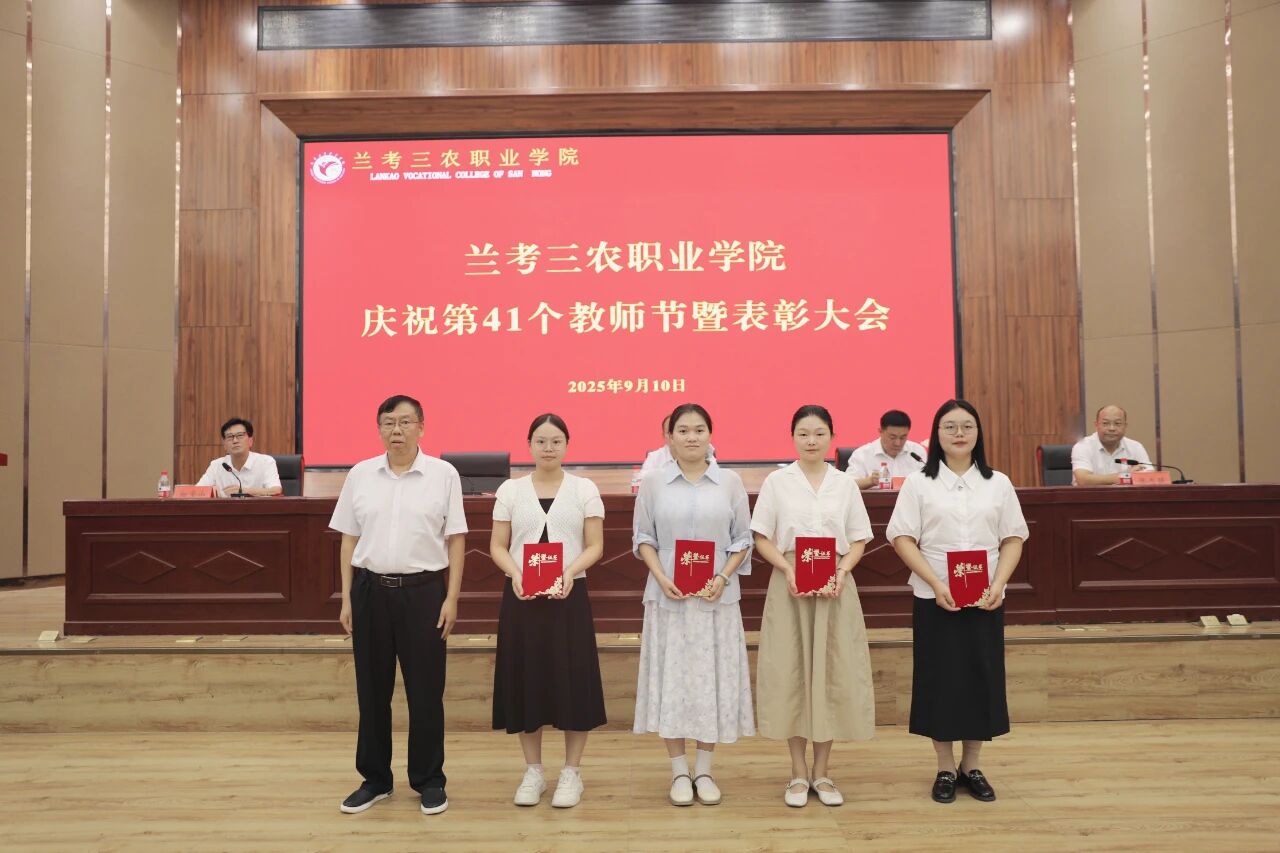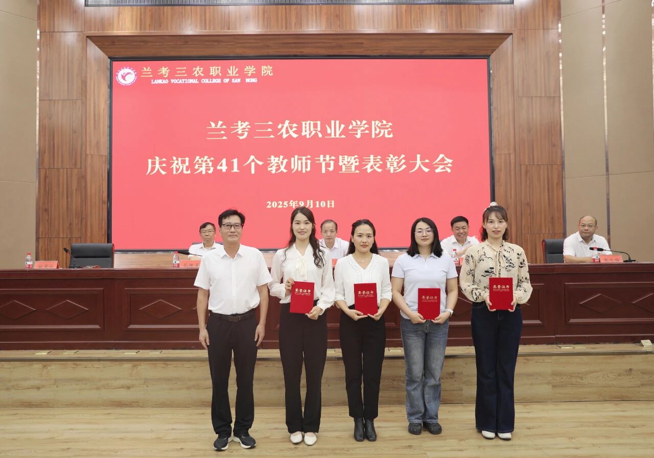 9月10日,兰考三农职业学院召开庆祝第41个教师节暨表彰大会。校党委书记曾小平,党委副书记王凤普,副校长孔德省,纪委书记张志强,副校长白宝山出席会议。各处(室)、各院(部)负责人及全体教职工参加会议。会议由王凤普主持。