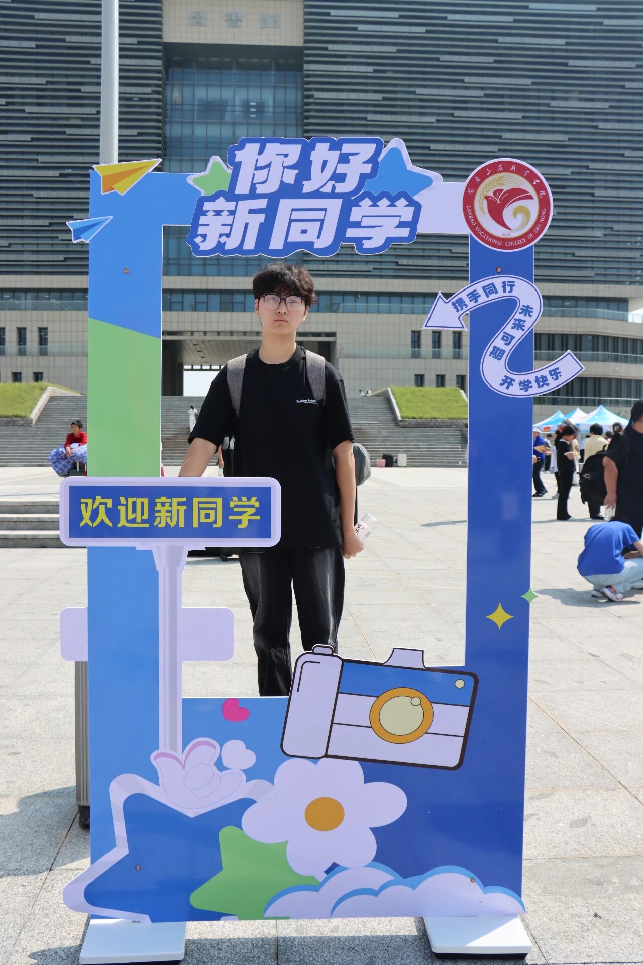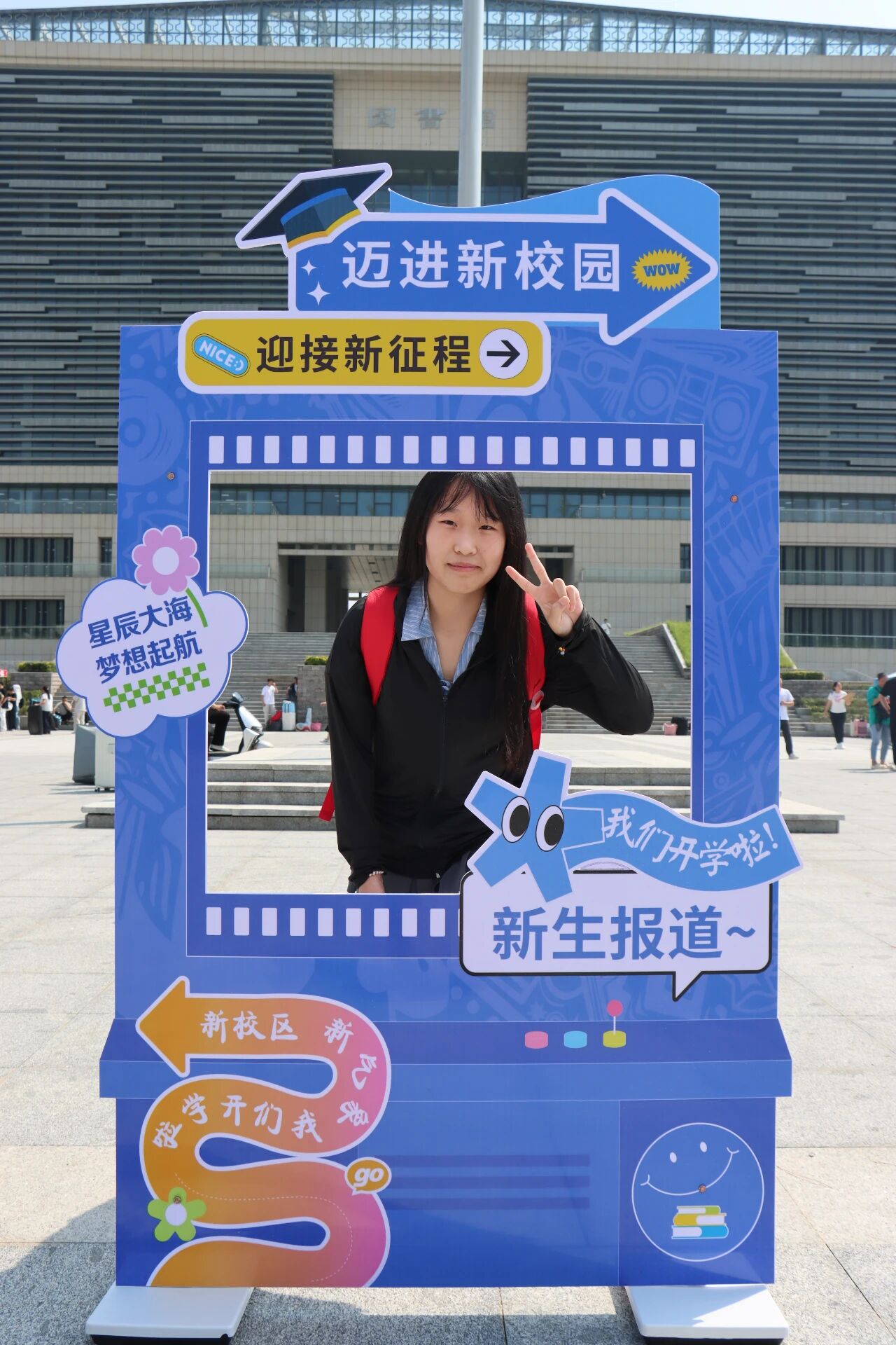 一进入校园,热闹的景象便映入眼帘。报到点被布置得温馨而富有创意,各种指示标识清晰明了。