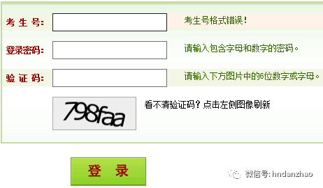 2、在考生登录区域输入考生的考生号、密码和验证码,点击登录,登录普通高招服务平台。