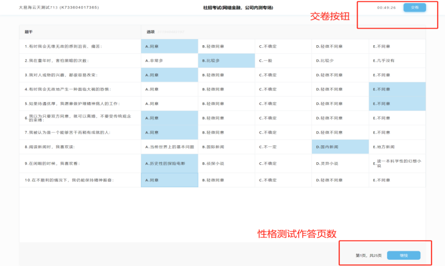 所有题目做答完成后,可在规定时间内点击“交卷”按钮进行交卷,或考试结束时间到,系统自动交卷。