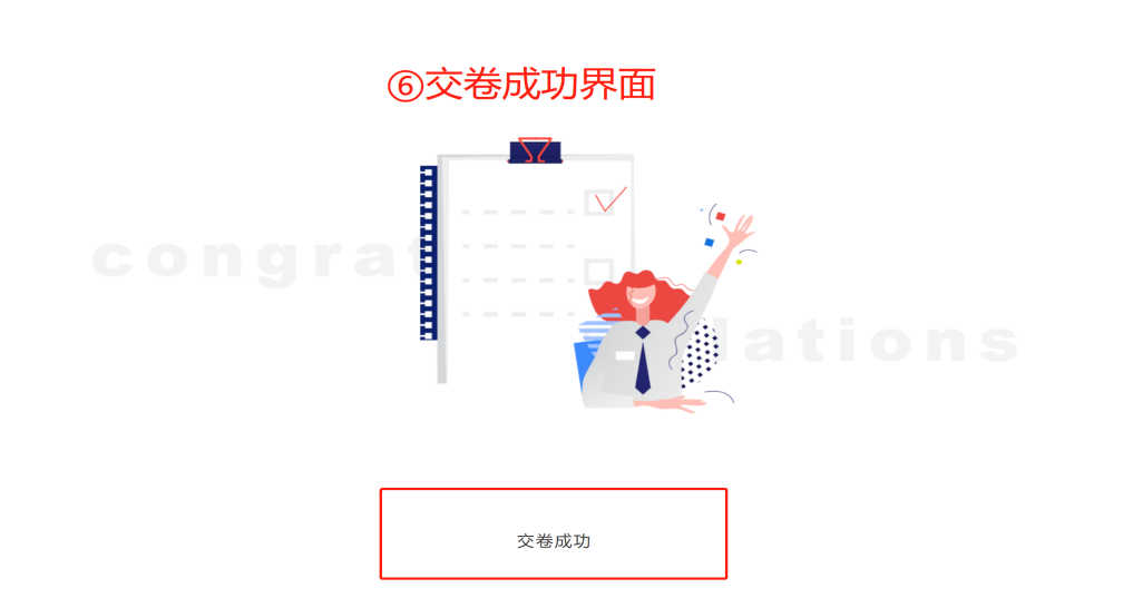 显示“交卷成功”考试顺利结束,未显示此页面请及时联系技术支持。
