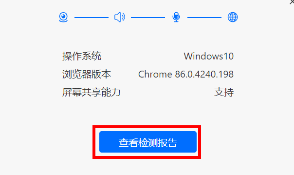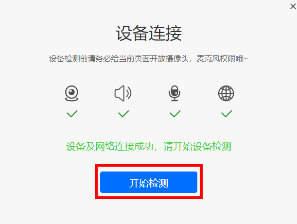 注:若测试成功后仍然提示检测摄像头,请更换浏览器为最新版谷歌浏览器。