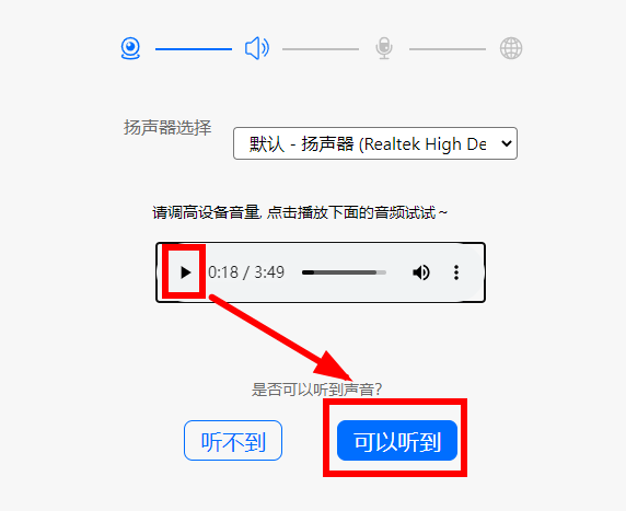 点击播放按钮,如果可以听到声音,点击可以听到。