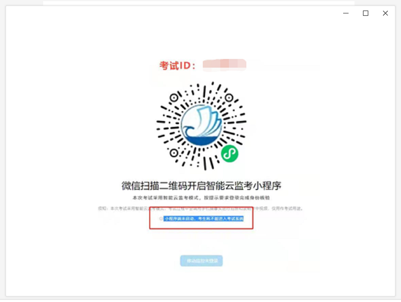 出现第二视频监控小程序二维码,请使用微信扫描二维码开启云监考小程序。