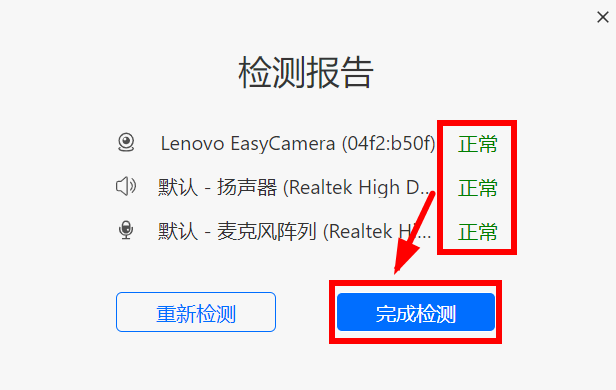 显示正常点击完成检测。