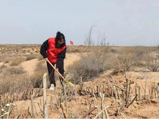 师晶晶在鄂托克前旗昂素镇进行毛乌素沙地治理工作。(受访者供图)