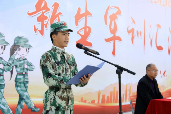 新生代表会计3班的王雨敬同学代表全体同学,表达了对学校所有领导、老师、教官等的感谢之情,代表2020级新生向各级领导保证,一定团结奋进、继续努力,不辜负大家的期待。