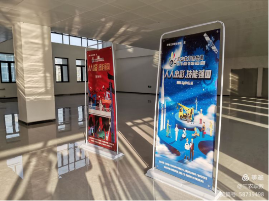 教室走廊设立宣传海报,帮助学生树立技能强国的理想信念