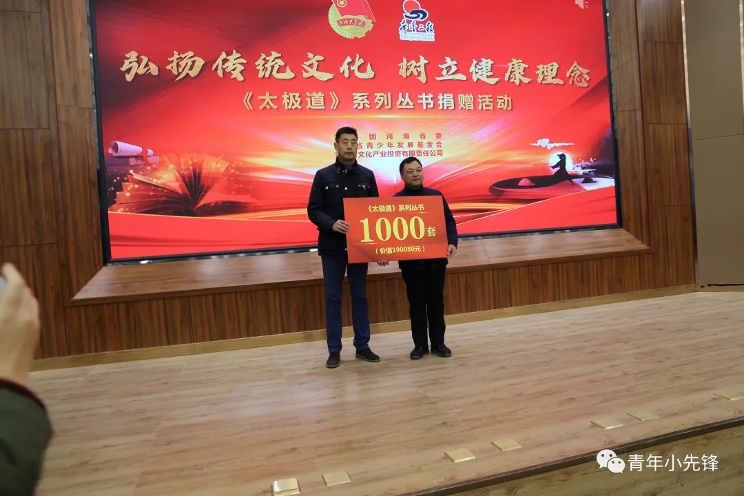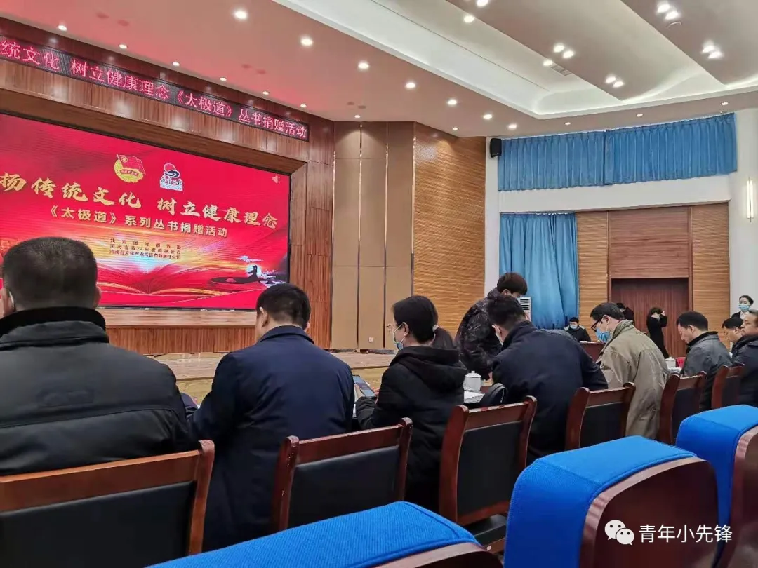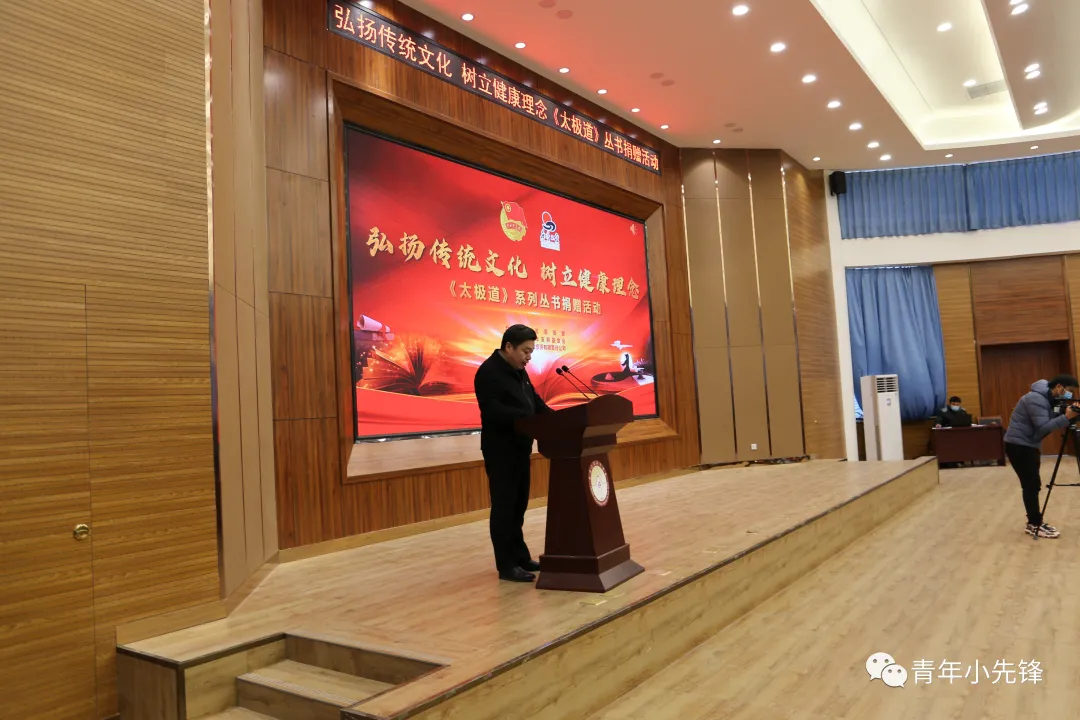 1月8日上午,由共青团河南省委、河南省青少年发展基金会、河南省文化产业投资有限责任公司主办的《太极道》系列丛书捐赠活动仪式在兰考三农职业学院报告厅隆重举行。团省委希望工程办公室主任申继东,河南省青少年发展基金会希望小学部部长石恩庆,兰考县委常委、统战部部长刘广亮等,以及兰考三农职业学院领导王凤普、史天佑出席活动。