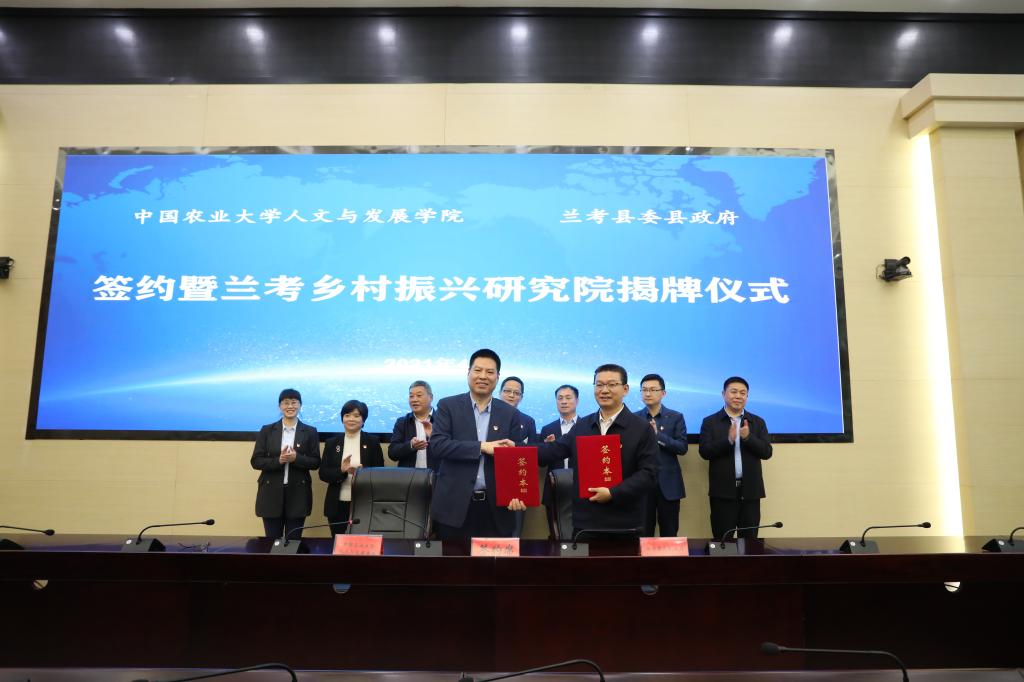 2021年4月28日,在兰考县机关大院1号楼三楼党政会议室,中国农业大学人文与发展学院·兰考乡村振兴研究院签约和揭牌仪式成功举行。