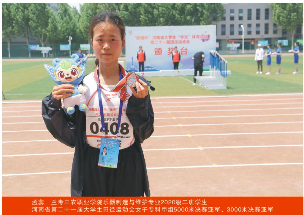 我院乐器制造与维护专业2020级二班学生孟蕊在比赛中发挥出色,摘得女子专科甲组5000米决赛和3000米决赛两枚银牌。建筑工程技术专业2020级二班学生蔡玉博获得男子专科甲组800米决赛第六名。