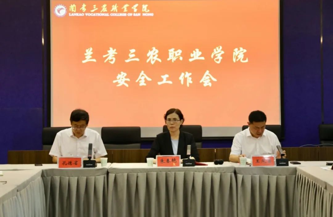 为进一步提高学校安全工作的针对性、实效性,增强师生安全意识,强化学校安全管理,扎实构建平安和谐的育人环境,9月9日,兰考三农职业学院召开安全工作会议。校长朱春艳,副校长王凤普、孔德省出席会议。