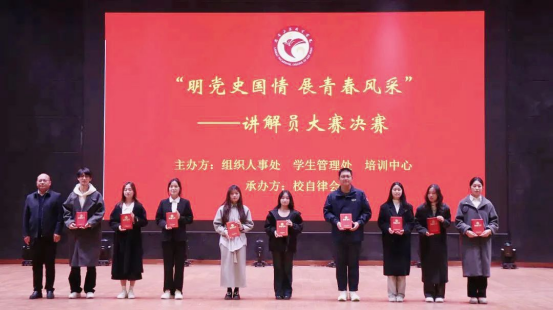 为更好发挥我校文化育人作用,展现当代大学生风采,激发广大学子爱校爱国热情,11月20日,我校“明党史国情 展青春风采”讲解员大赛决赛成功举行。党委书记朱春艳,副校长王凤普、孔德省,纪委书记张志强,各处室负责人及近千名学生观看了本次比赛。