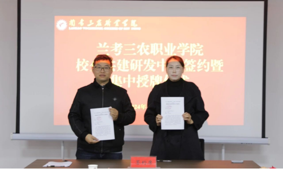 11月29日,兰考三农职业学院与正大食品、曲大姐食品、三农食品有限公司举行校企共建研发中心签约暨集中授牌仪式。正大食品(开封)有限公司生产总监解全忠、人力总监赵世英,河南省曲大姐食品有限公司业务经理孔璐璐、办公室主任葛云霞,兰考县三农食品有限公司总经理袁维寨、销售总监李文乐、技术总监袁鲜、食品安全总监赵营营,兰考三农职业学院副校长孔德省、赵振利,以及相关部门负责人参加了签约仪式。仪式由赵振利主持。