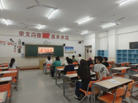 在观影活动中,为了让同学们更有参与感,主持人在台上去分享观影心得,与同学们互动,让同学们更好地了解历史,了解活动目的。