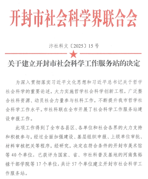 7月31日,开封市社科联发布“关于建立开封市社会科学工作服务站的决定”(汴社科文【2025】15号),兰考三农职业学院人文艺术学院实训基地被授予“开封市社会科学服务工作站”称号,成为开封市推动社科普及、服务地方经济社会发展的又一重要平台。