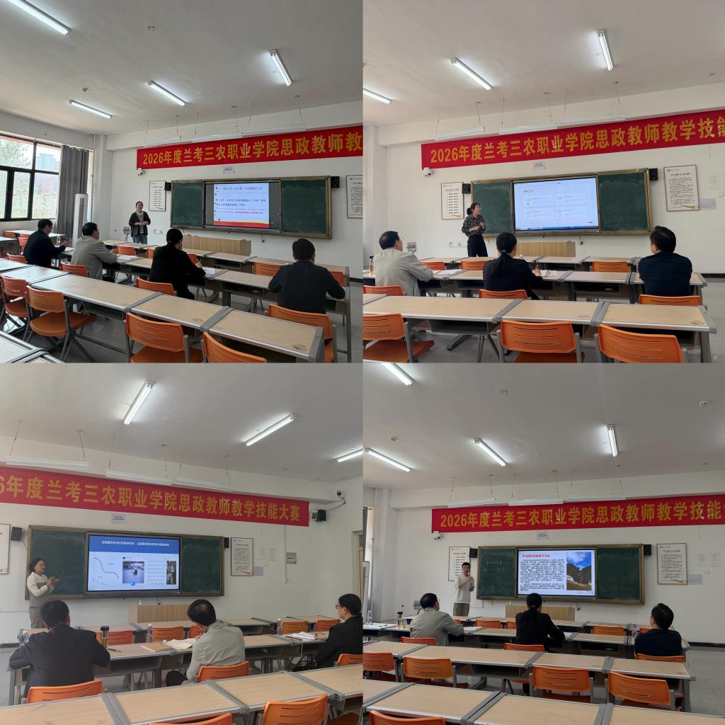 为提升思政课教学质量,备战省级大听课、大调研,4 月 17 日下午,兰考三农职业学院思政课教师专项技能大赛在 B105 教室圆满举行。大赛以赛促教强技能,以研促学迎调研为主题,全体专职思政课教师全员参赛,兼职教师积极参与。比赛严格按照 “教什么讲什么” 分课程选题,教师围绕指定专题开展 10—15 分钟课堂教学展示,紧扣教材大纲、突出育人导向、创新教学方法,充分展现良好教学素养。学院成立以白宝山副院长为组长的专项领导小组,邀请校内外专家担任评委,从教学内容、思路、素养、创新四方面现场打分,综合评审,最终评选出一、二等奖若干名,以表彰先进、树立标杆。此次大赛以赛促教、互学互鉴,有效提升教师教学技能,规范教学流程,为迎接省级听课调研筑牢基础。
