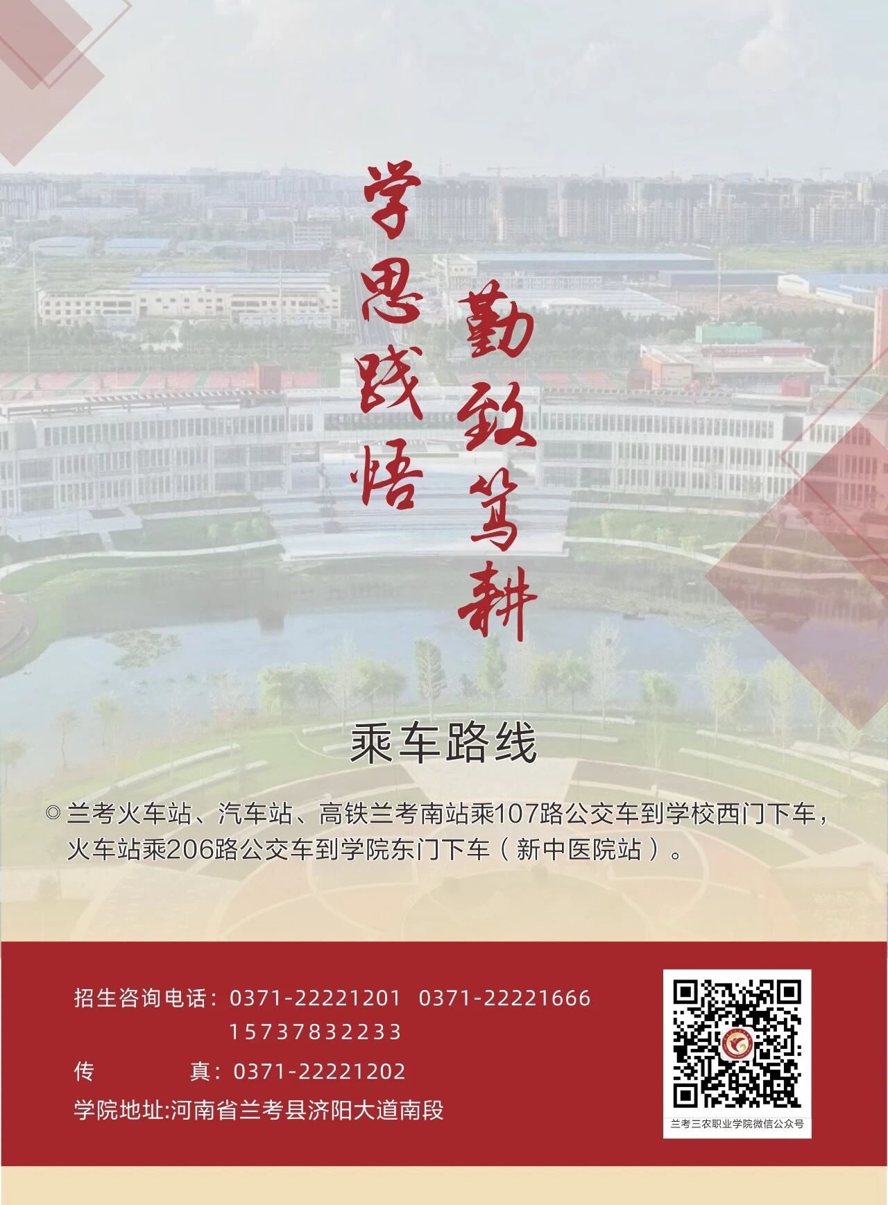 乘车路线:1、从兰考火车站或汽车站乘201公交车到兰考三农职业学院南门下车即到。