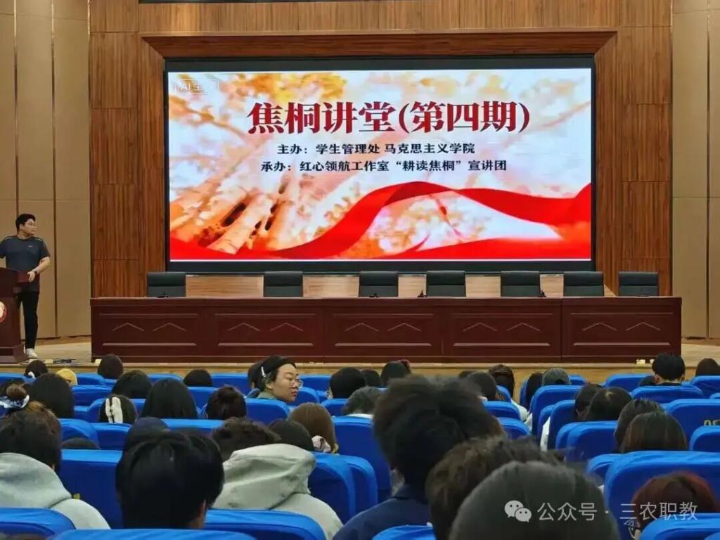 为赓续红色基因传承,深化师生思想政治教育。4月8日,焦桐讲堂(第四期)在我校多功能报告厅内顺利开讲。宣讲员安羽萌以《传承焦裕禄精神,砥砺奋进新征程》进行了精彩讲解,吸引了众多师生参与。
