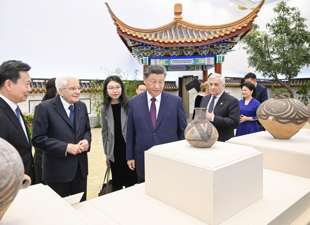 11月8日晚,国家主席习近平和夫人彭丽媛在北京人民大会堂同意大利总统马塔雷拉和女儿劳拉共同赏鉴意大利查获并返还中方的中国流失文物。新华社记者 申宏 摄11月8日晚,国家主席习近平和夫人彭丽媛在北京人民大会堂同意大利总统马塔雷拉和女儿劳拉共同赏鉴...