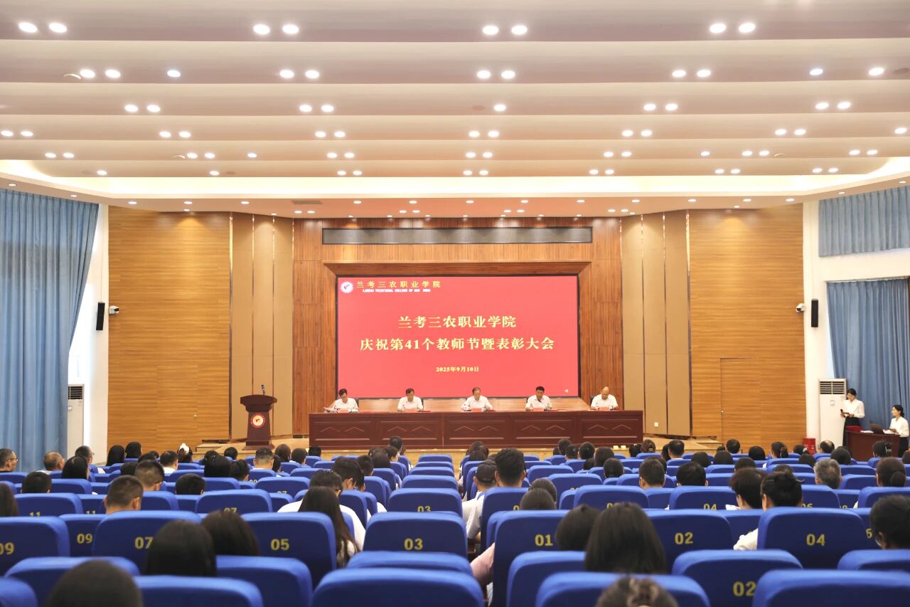9月10日,兰考三农职业学院召开庆祝第41个教师节暨表彰大会。校党委书记曾小平,党委副书记王凤普,副校长孔德省,纪委书记张志强,副校长白宝山出席会议。各处(室)、各院(部)负责人及全体教职工参加会议。会议由王凤普主持。会前,全体教职工共同诵读...