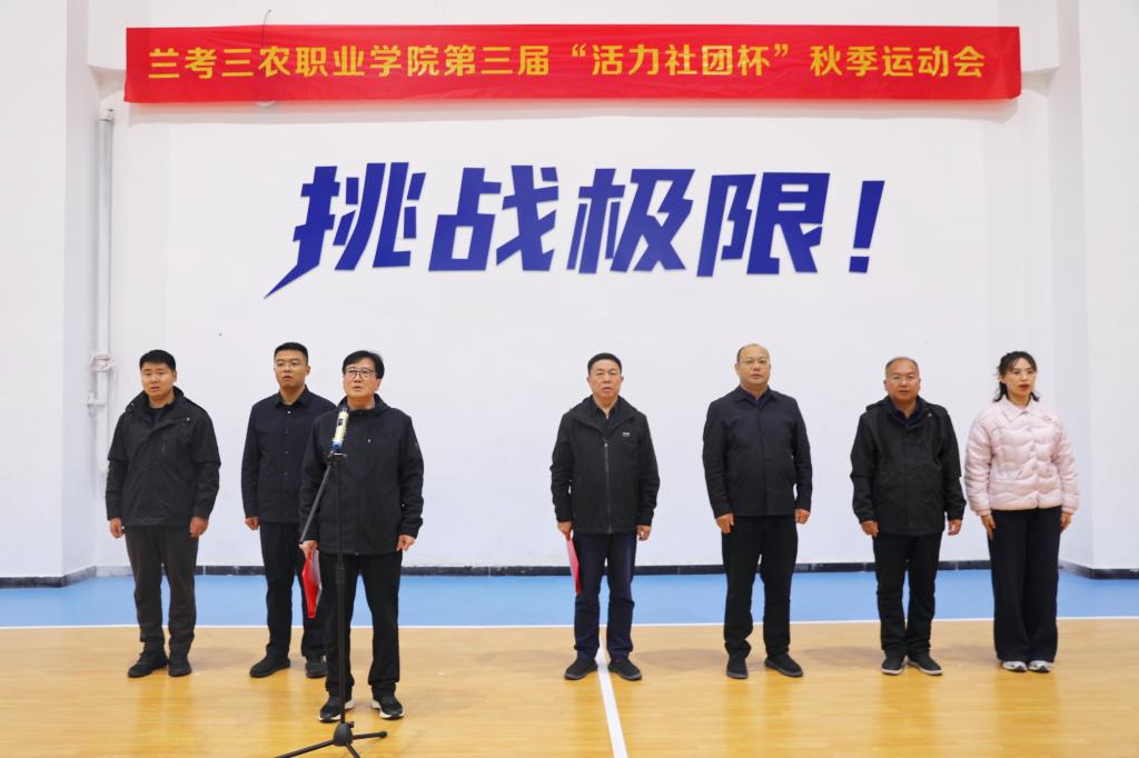 10月20日,兰考三农职业学院举行第三届“活力社团杯”新生运动会开幕式,党委副书记王凤普、纪委书记张志强、副校长白宝山出席仪式,教师代表及2025级全体新生参加。王凤普致辞白宝山主持开幕式运动员代表马嵩嘉宣誓裁判员代表赵勇宣誓张志强为篮球比赛开...