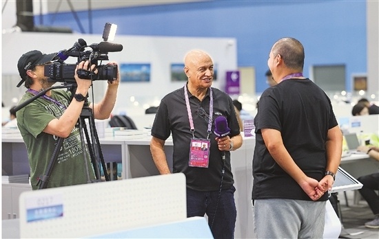 外国记者在杭州亚运会主新闻中心工作。潮新闻记者 王建龙 摄 杭州亚运会,是超过1.2万名运动员竞技的舞台,更是各个国家和地区1.1万余名媒体记者的新闻盛宴。 他们在赛场同呼吸、同感受,他们在亚运村彼此交流、共同分享,他们奔波于主办、协办城市,体验...