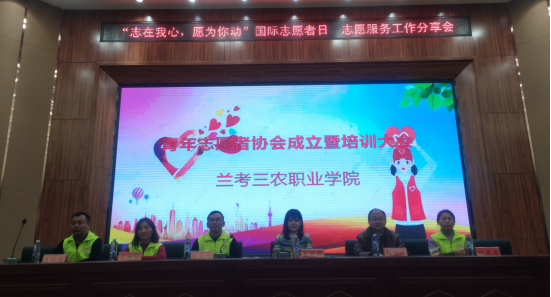 兰考三农职业学院青年志愿者协会成立暨培训大会成功举行 12月5日下午,在第34个国际志愿者日到来之际,兰考三农职业学院青年志愿者协会成立暨培训大会成功举行,共245名志愿者参加大会。兰考三农职业学院团委曹园园、协会指导老师程秀波出席,...